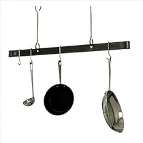 The ultimate in design simplicity. This sleek ceiling bar features fixed offset hangers and is available in five attractive finishes. Includes 6 angled pot hooks plus drywall toggles. Utensils extension hooks and pots are not included.