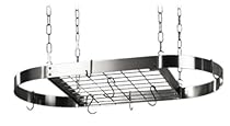 Rogar Stainless Steel Oval Pot Rack with Chrome Grid 34" x 16"