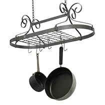 Stylish and decorative Decor racks from Enclume are a great mid-price option. The Decor Collection is lighter-weight steel than our Premier line yet is crafted of Enclume's signature hammered steel for beauty strength and durability. This rack ships unassembled. Includes grid with 4 grid brackets 12 pot hooks 2 S-hooks two 6-inch pieces of chain and 2 ceiling screw hooks plus new drywall toggles for fast easy installation. Holds 100s of pounds. (Utensils extension hooks and pots are not included.)